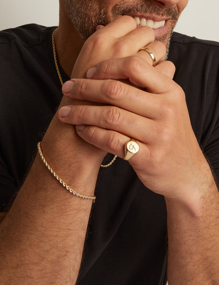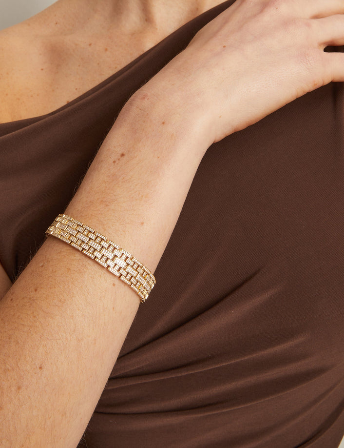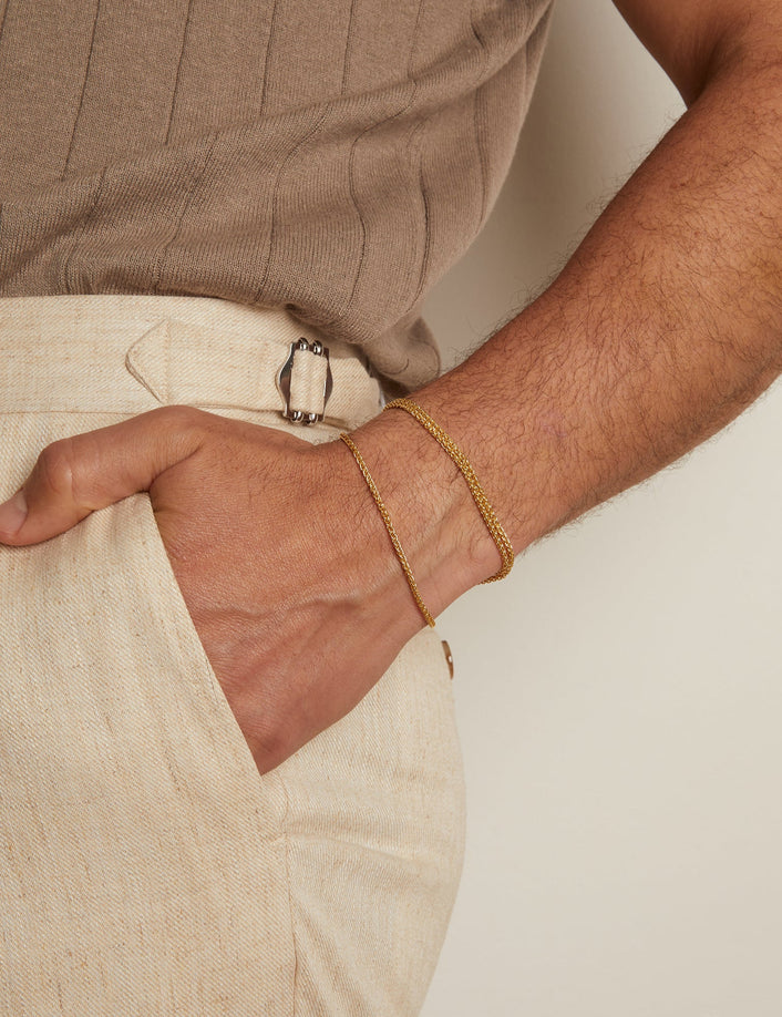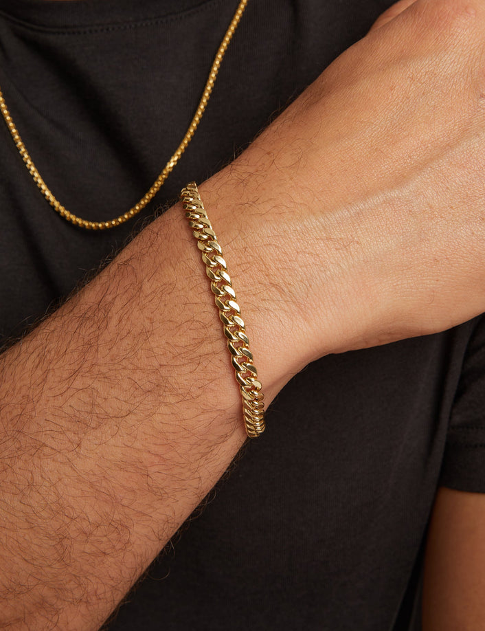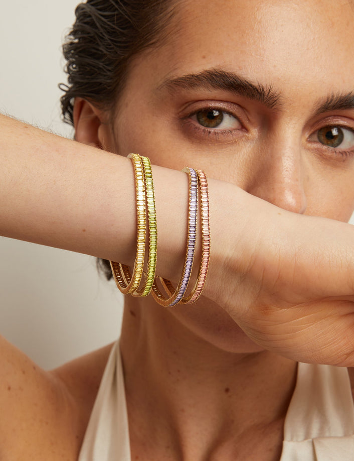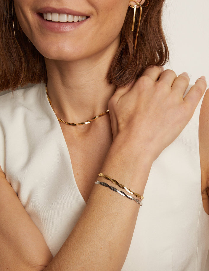 Gold bracelets of all shapes and sizes.